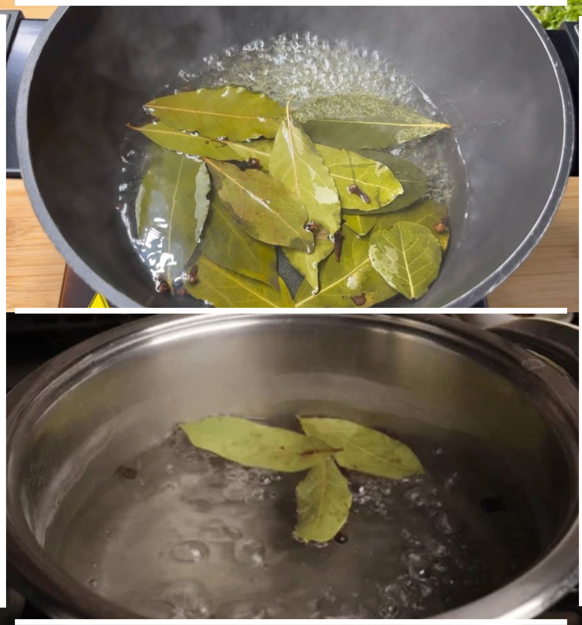 Pour the water into a pot, and add the 2 tablespoons of cloves and 2 bay leaves. Let it boil for about 10 minutes. Once done, let it cool down.