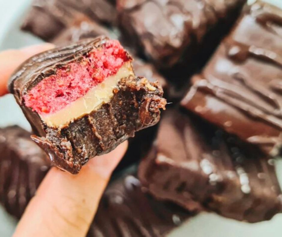 Chocolate Brownies With Strawberry and Raspberry Jam