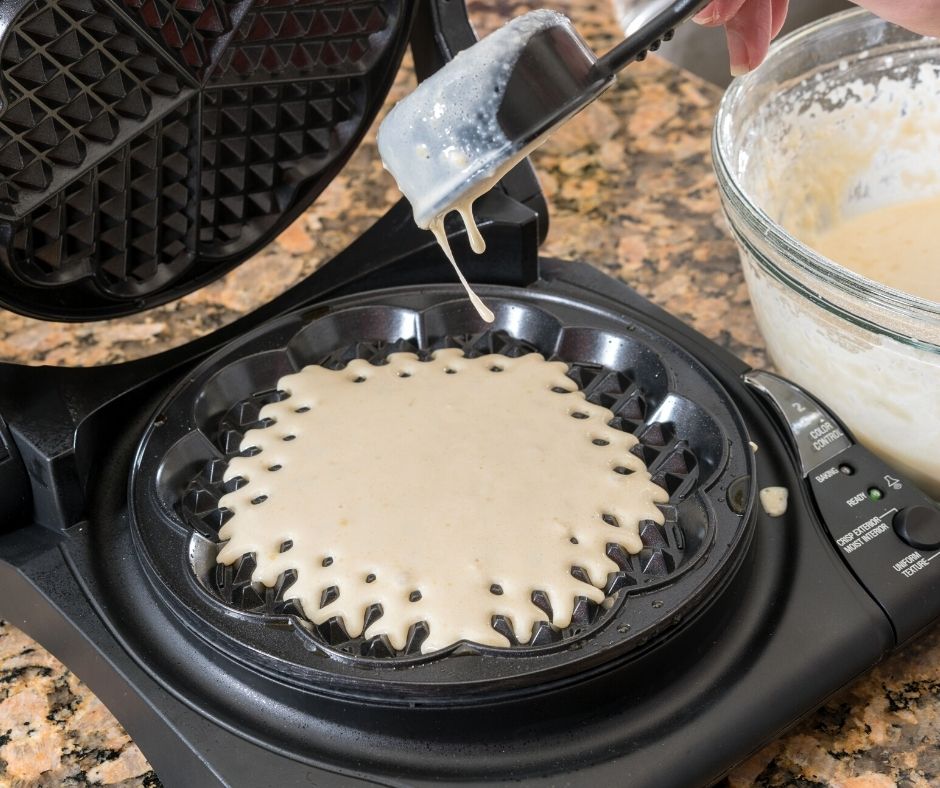 - When the waffle is ready, take it out and leave it on a plate to cool a bit. Repeat the procedure with the remaining mixture. Do not fold the hot waffles on top of each other so that they do not soften.They are served hot with additional toppings if desired or kept in a closed container, in the refrigerator.