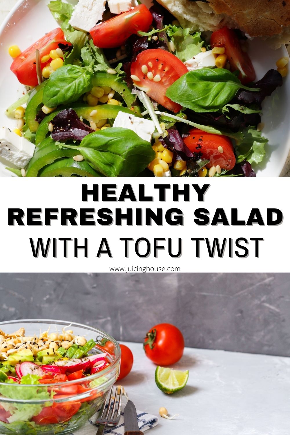 - Slice the vegetables the way you cut them for a salad. Put them in a bowl. Mix everything well. Season to taste.Cut the baked tofu with olives into cubes, put it in a salad, sprinkle with sesame seeds and stir once more.You just got one refreshing summer salad with a little twist. Enjoy!
