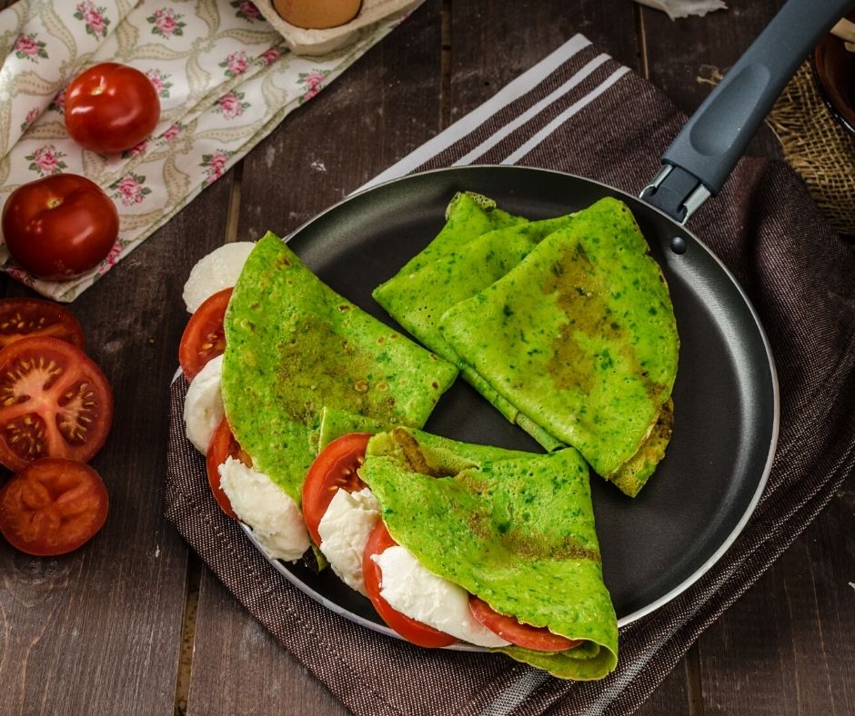 • In a blender, crack the egg, add the flour, milk, remaining spinach, and a pinch of pepper and blend until a smooth texture.