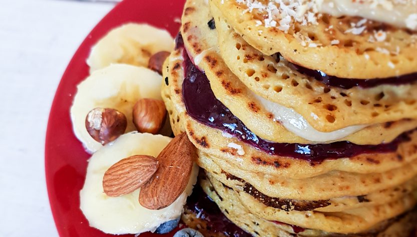 These are the most fluffy pancakes in the world, and they are without eggs, without flour and with only 4 ingredients (I also count the water ๐Ÿ˜Š).