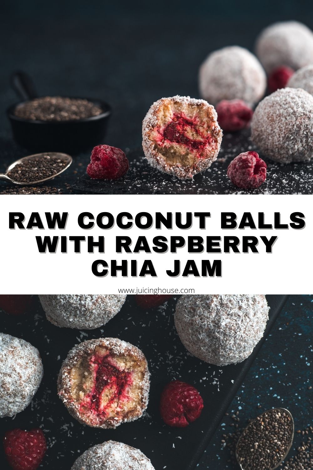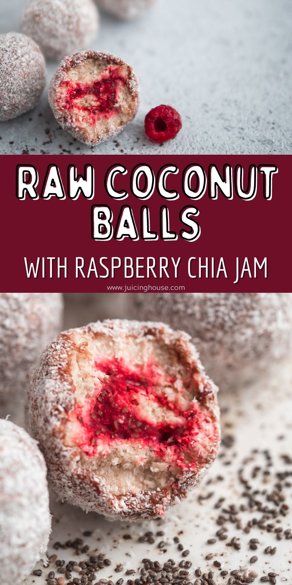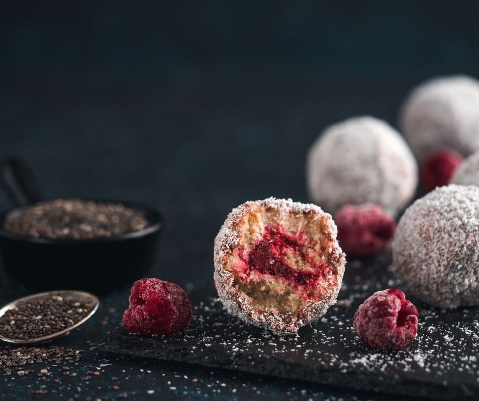 Raw Coconut Balls with Raspberry Chia Jam
