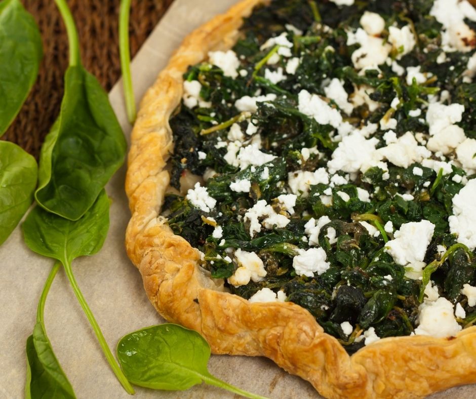 - When done, remove, allow to cool slightly then cut into triangles and enjoy this version of the spinach pie.