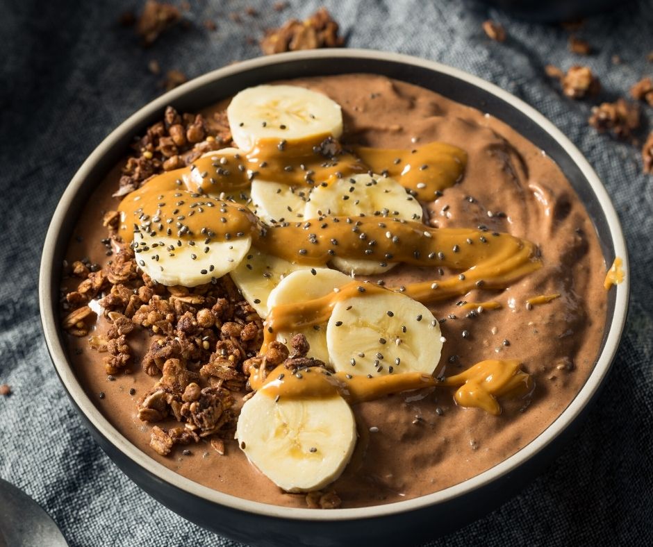 • Serve in a bowl topped with some dark chocolate chips, some peanuts and an extra drizzle of peanut or cashew butter.